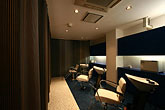 シャンプー・マッサージを受けていただくためのブース。 明るい店内とは対照的な、落ち着いたリラクゼーションスペースです。 まるで、静かな海の中にいるようなやすらいだ気分を醸し出します。 |